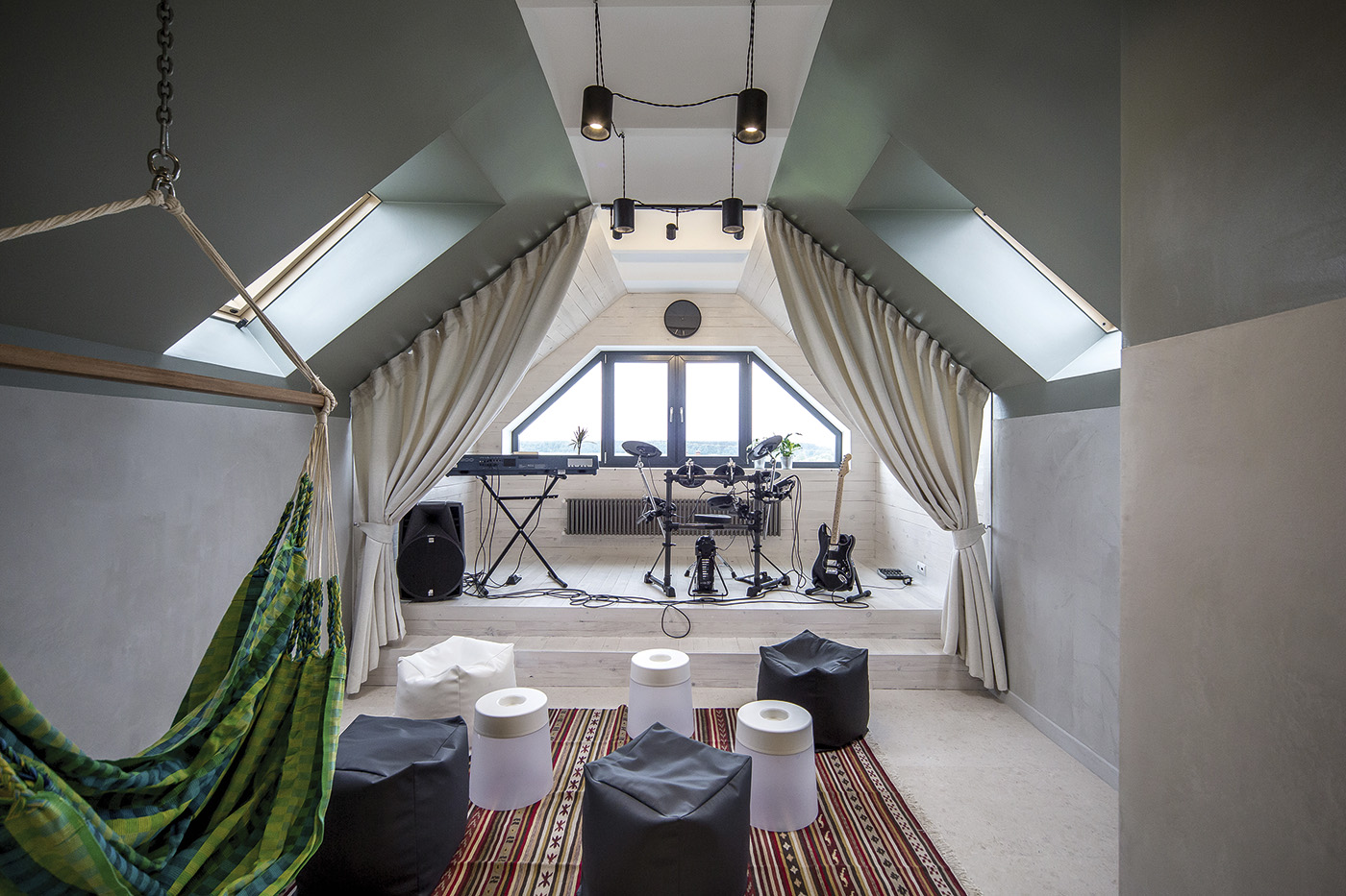 The attic is undoubtedly the perfect place for a cosy and private bedroom. Thanks to this, you can directly admire the starry sky right from your own bed, listen to the raindrops bouncing on the roof, or start each day with the sun's rays warming your interior.