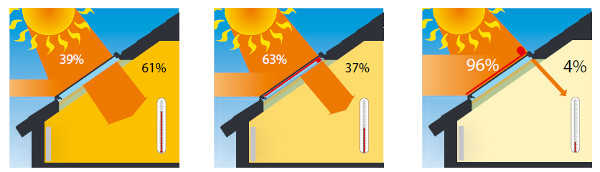 The investigation results above show clearly that external accessories (awning blind and roller shutter) provide the best protection from outside heat. You will see the optimum sun protection is achieved by using the external roller blind ARZ. Internal accessories also offer protection from the heat but to a lesser degree than external accessories; their main function is to decorate the space and regulate the amount of light entering the room.